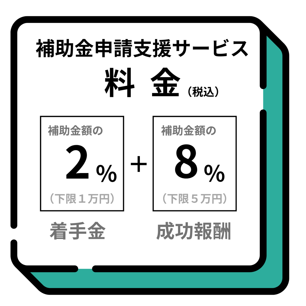 ※基本的には、すべての補助金について上記の料金形態を採用しますが、補助金によってはお値引き致しますので、お気軽にご連絡ください。