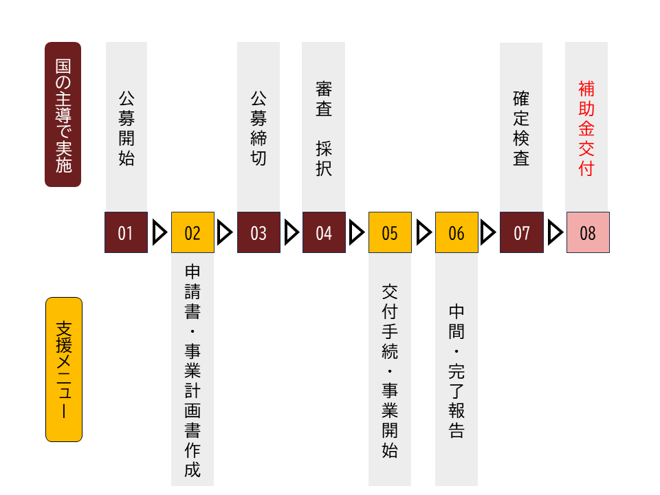| 交付手続き | 補助金の細かいルールに沿った正確な交付手続きをサポートします。 |